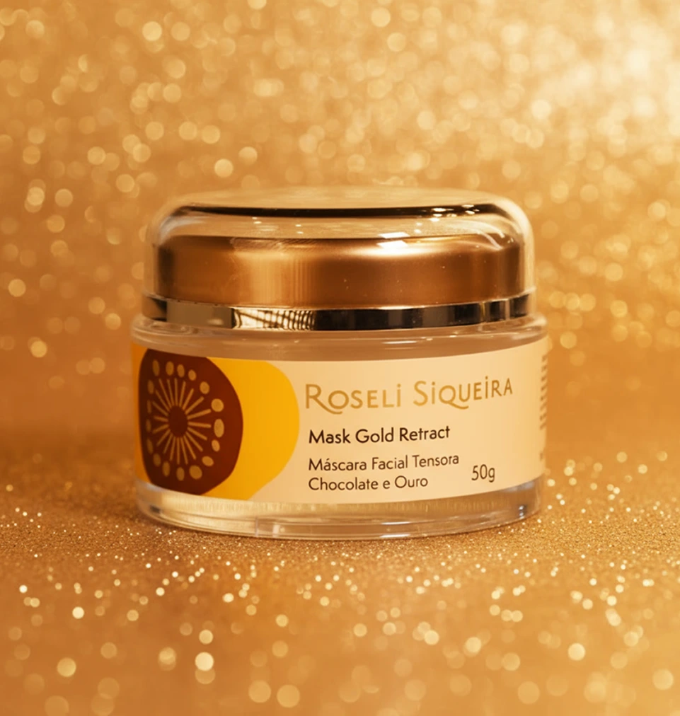 A Máscara Facial Tensora Gold Retract combina a sofisticação das partículas preciosas de ouro com o poder antioxidante dos fenóis do cacau. Essa fórmula exclusiva atua de forma multifuncional: controla a oleosidade, trata a acne, reduz linhas de expressão, retrai os poros e realça o contorno facial.